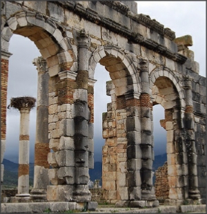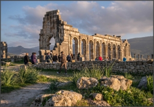 The triumphal arch, built in 217 in honour of the Roman Emperor Caracalla and his mother, originally housed a bronze chariot atop its ancient stones, and was rebuilt in 1933. Wonderfully preserved mosaics in vivid colours, nearly all of which depict mythological scenes, can still be seen. Remains of palaces, baths, basilicas and spectacular mosaics transport you to a time 2000 years ago. A few miles from Volubilis is the holy city of Moulay Idriss.